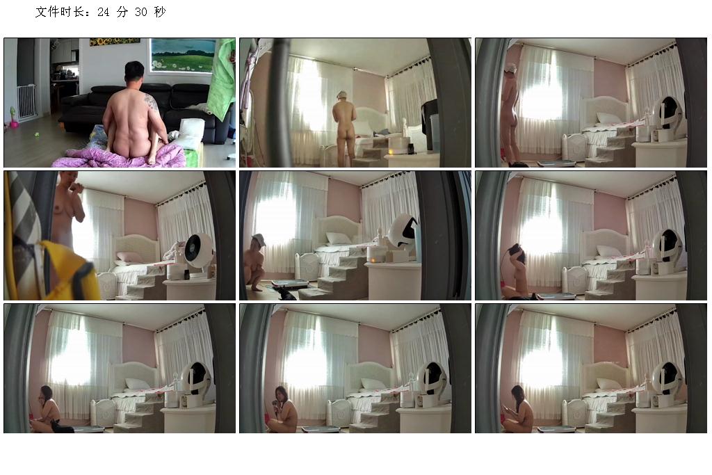 黑客破解家庭網絡攝像頭偷拍兩個巨乳少婦日常生活在客廳和老公啪啪