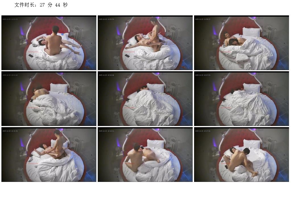 天眼偷拍 11-23 這大紅圓床跟個王座一樣 男子在上面操逼很帶勁吧 少婦的逼看起來有些松 也可能水多
