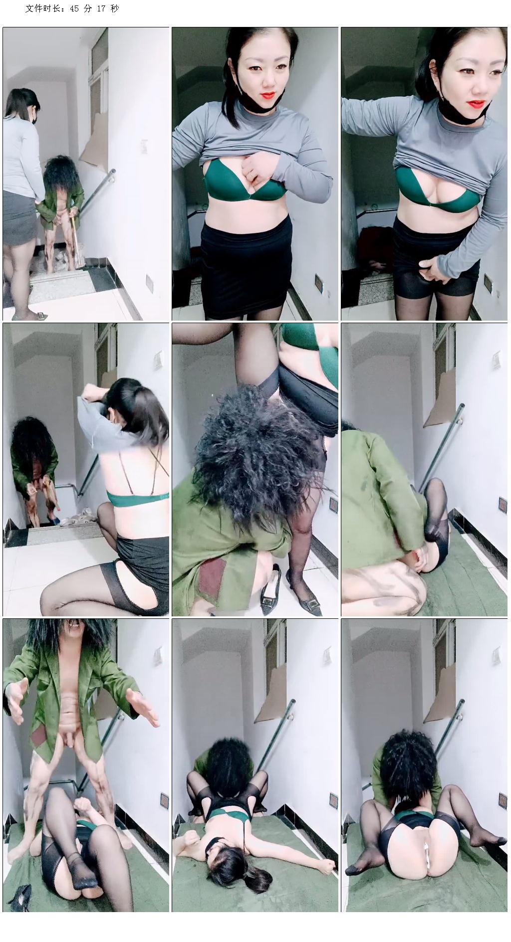 劇情演繹要命的嫂子樓道裏勾引要飯的傻子,揉奶玩逼口交大雞巴,讓傻子舔逼揉奶爆草,無套抽插內射中出刺激
