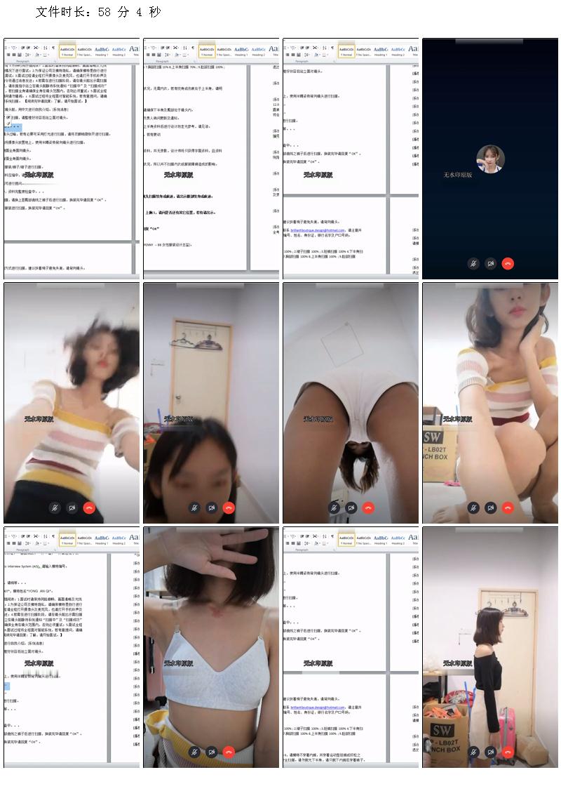 假冒名模公司在線招聘模特面試視頻 以檢查身體是否有紋身爲由讓妹子脫掉內衣接受檢查 720P無水印原版