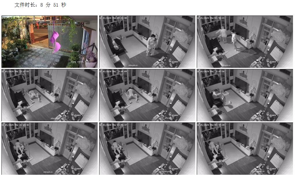 黑客破解網絡攝像頭偷拍豪宅裏的的富姐晚上散步回來被老公沙發草到地板