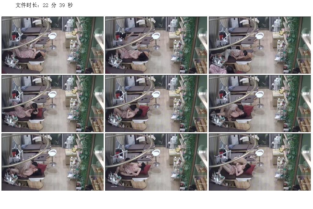 美容院攝像頭破解偷拍,風韻猶存碎花裙老板娘閉店後與情夫按摩床上做愛
