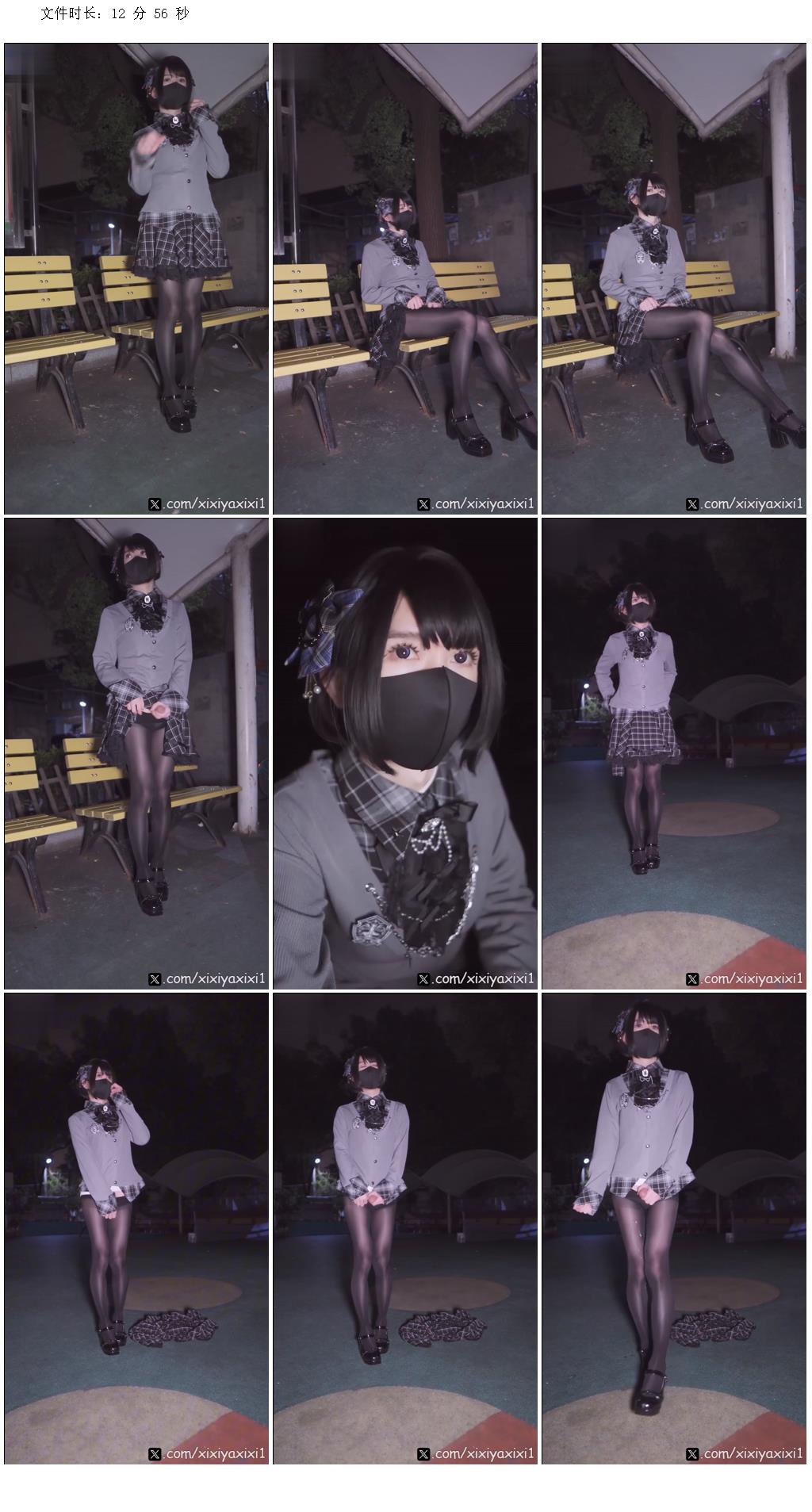 精品推薦推特超人氣僞娘『曦曦xixiyaxixi1』會員訂閱T037 黑絲學院風假兩件戶外公園露出射精